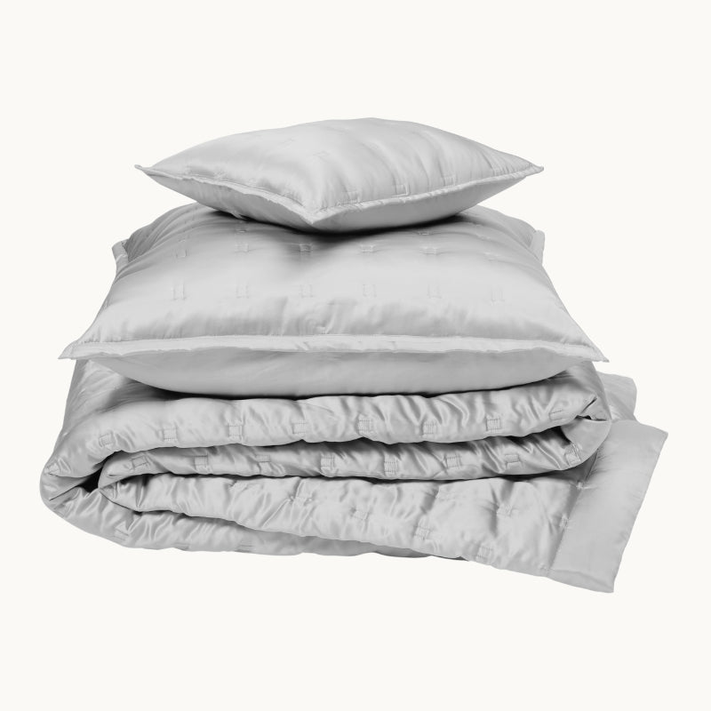 Our Windsor Silver Grey bedspread is part of our Windsor collection of silk bedspreads and cushion covers. The quilted stitching gives the bedspread a luxurious look and feel. Designed to complement most of our signature silk plain dye collections. Matching cushion covers are also available.