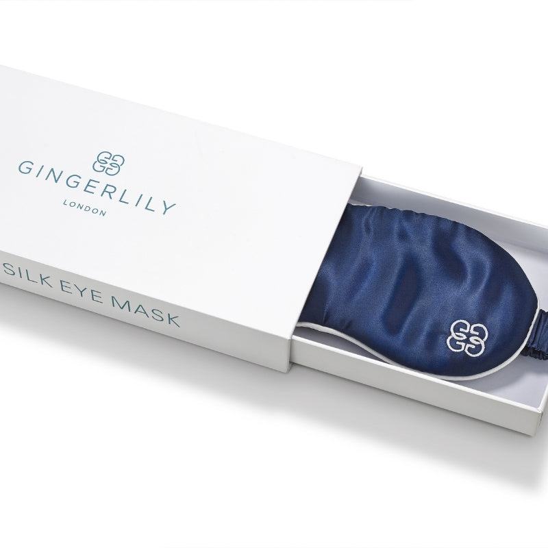 Gingerlily's navy eye mask features a light silk floss padding and due to silk's high protein content, the eye mask is gentle to the delicate eye area. The elasticated strap is wide and generous to allow the mask to sit comfortably around your head. It comes in a gift box and is perfect for the bedroom or for a long-haul flight.