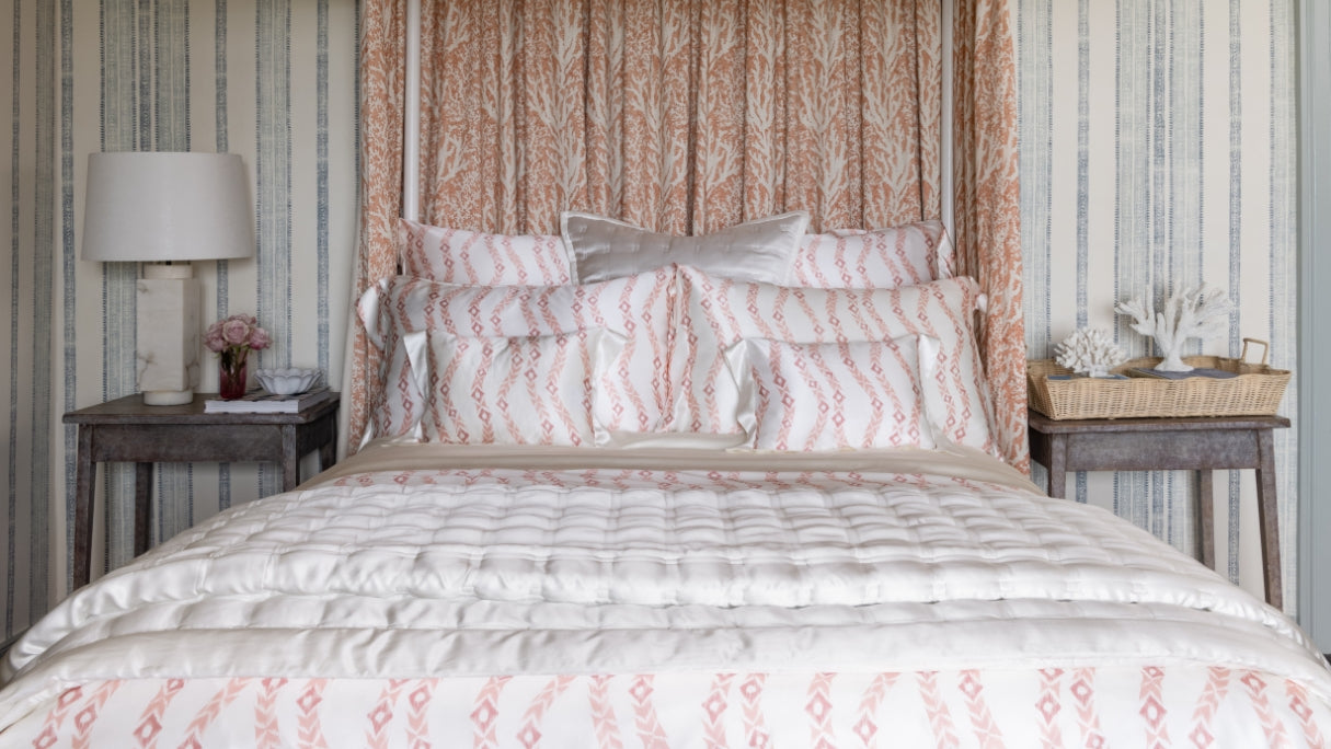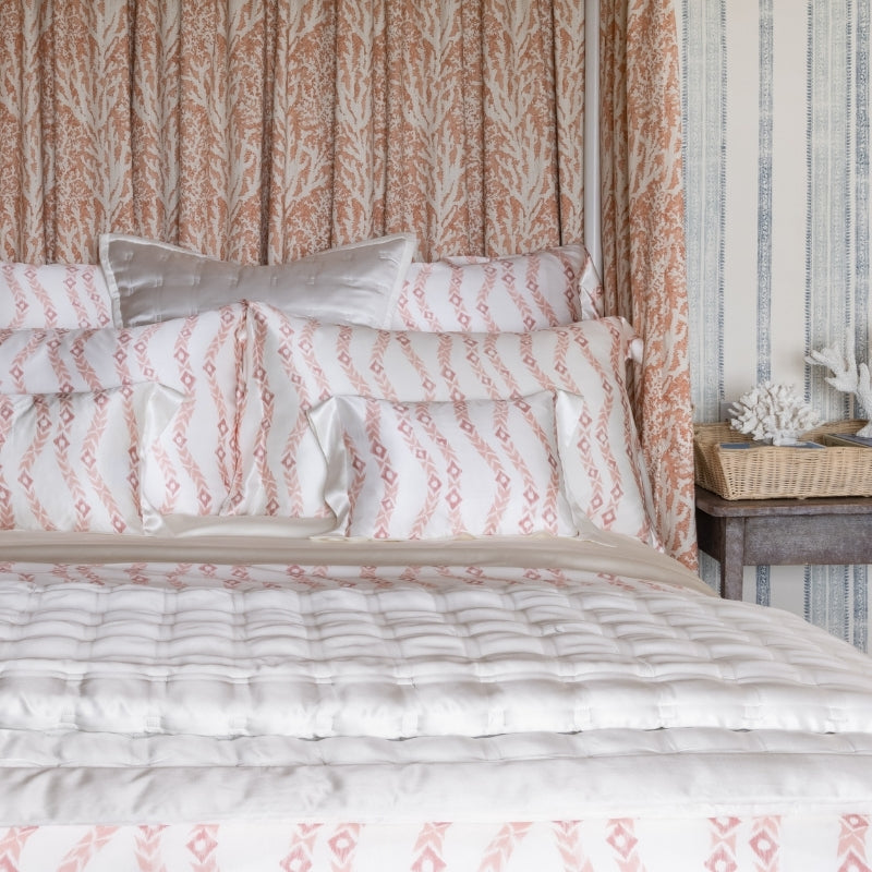 Our Tangleweed Pink pillowcases are part of our Tangleweed Pink silk bedding collection, designed in collaboration with fabric house Madeaux. Crafted from 100% pure mulberry silk, this botanical motif in a soft coral pink creates a relaxing, restful ambience.