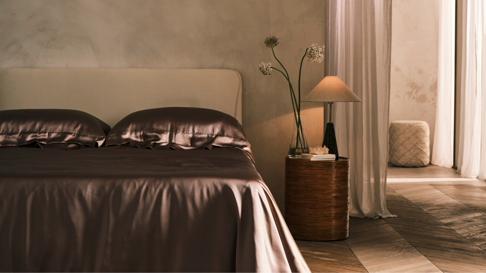Crafted from the finest mulberry silk, the Gingerlily Mocha flat sheet brings rich, grounding warmth to any bedroom interior. It serves as the perfect foundation for a luxurious bedding set, whether layered beneath your duvet or styled elegantly over the top of the bed. Mocha pairs beautifully with coordinating pieces from the collection or contrasts effortlessly with lighter tones like Ivory or Blush for a refined, personalised look.