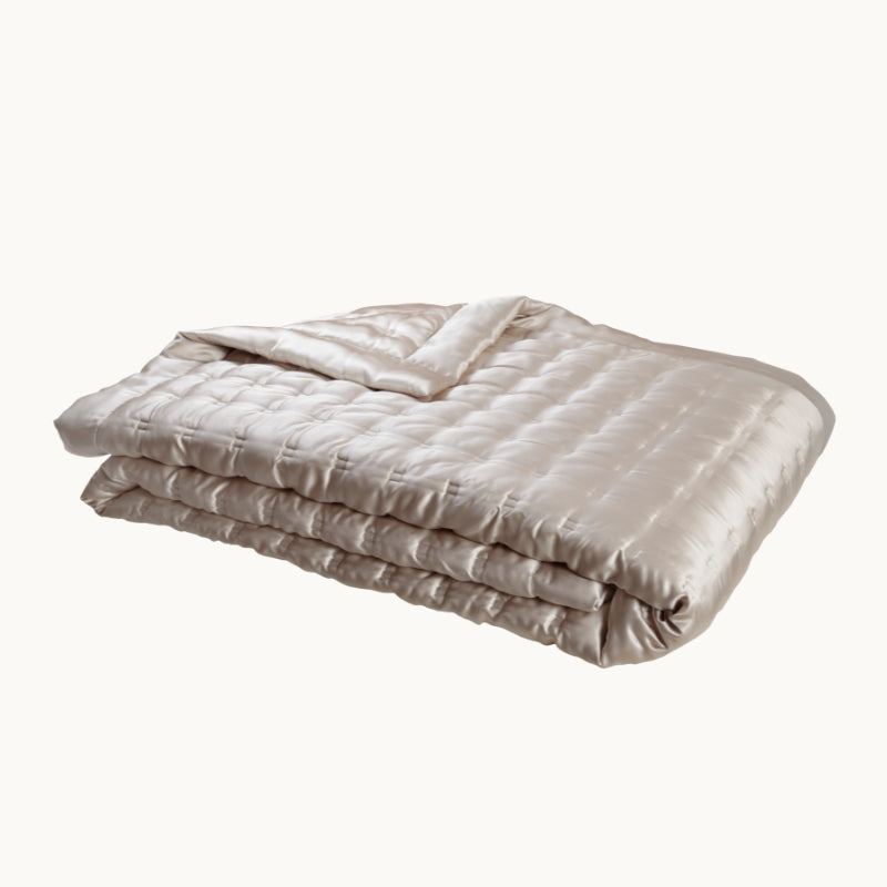 Featuring a beautifully muted colour option, this silk blush bedspread is a sophisticated addition to your interior design scheme. This decadent and warming accessory boasts a supportive polyester core that is enveloped by high-grade mulberry silk to offer unparalleled softness.